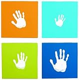 Our Hand Print Wall Art Set In Blue by Pearhead includes four (4) 10 x 10" canvases to display your baby's hand or footprints! Simply pour the paint in the included pan, press baby's hand or foot into the pan, and press the prints on the canvas. Then, just let it air dry overnight and voila!